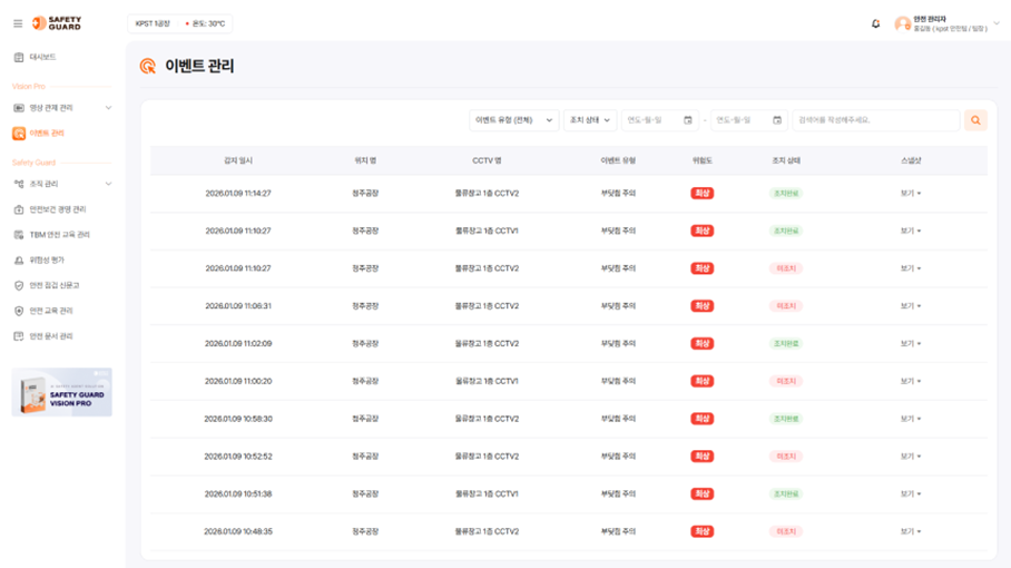 실시간 CCTV 영상 모니터링과 AI 이벤트 분석을 통해 산업현장의 위험 요소를 선제적으로 감지합니다.