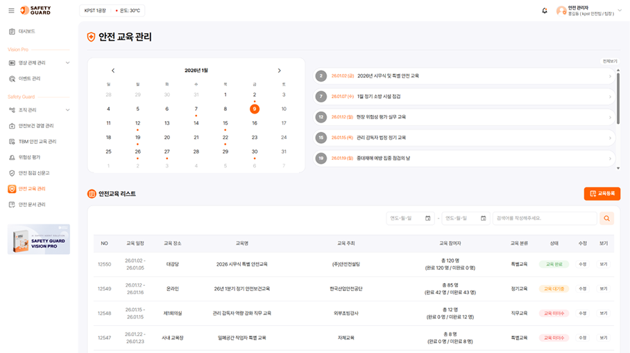 데이터 기반의 스마트 관제로 산업재해를 효과적으로 줄이는 통합 안전 관리 솔루션입니다.